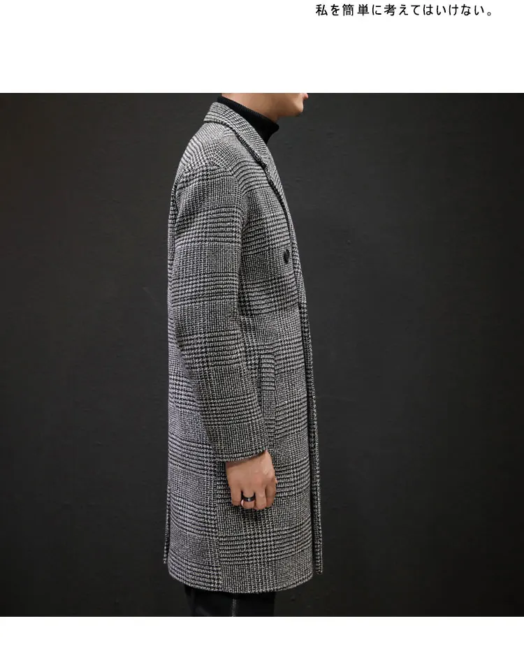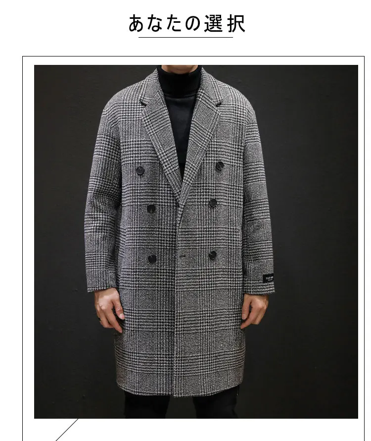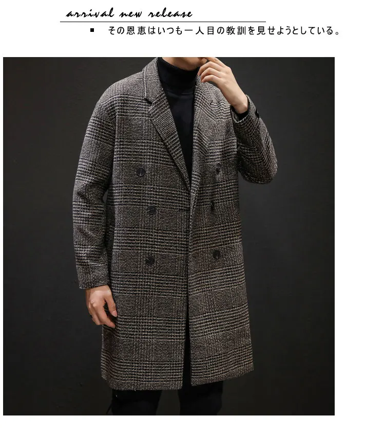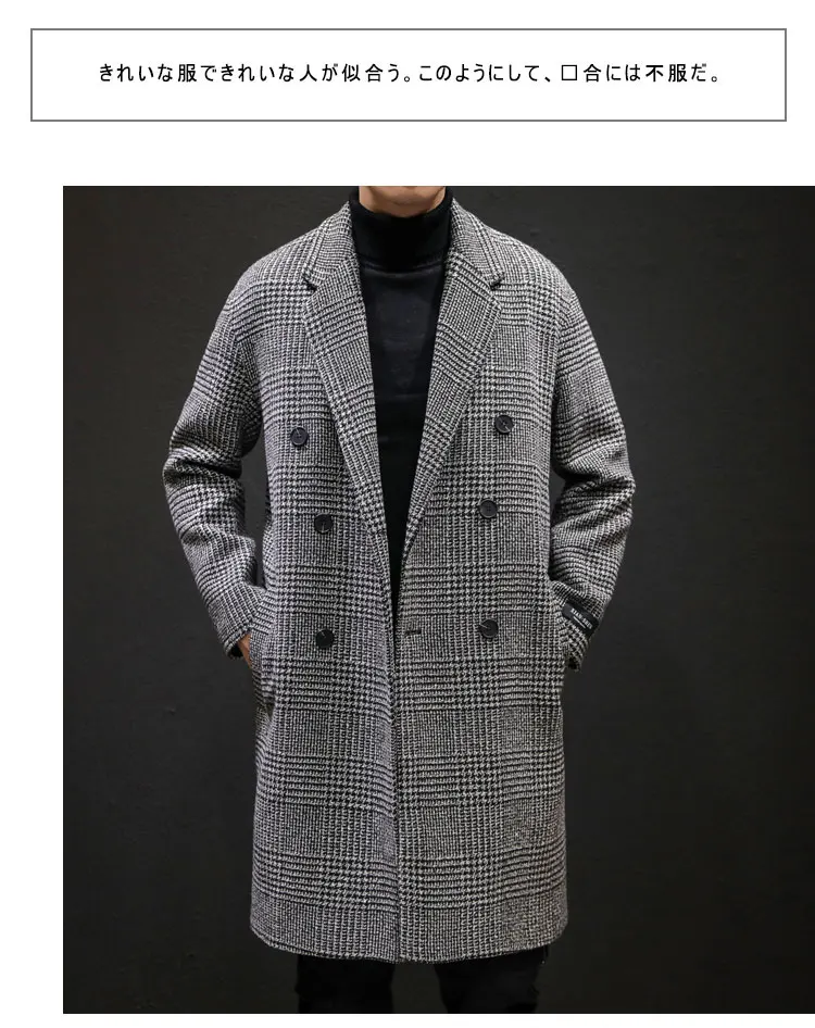 YASUGUOJI Casual Double Breasted Mens Wool Overcoat Winter 2022 Houndstooth Jacket Men Turn-down Collar Long Woollen Wind Coat